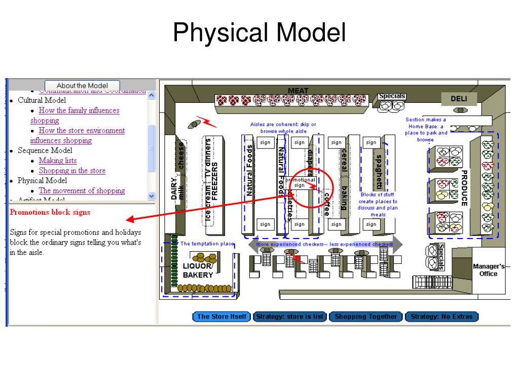 Physical Model • Diagram in detail the physical space in which the task is performed. • Identify both “official” and “unofficial” designation of locations. • Identify paths taken through the space during task performance. • Define how users use the space to accomplish the task. • Identify breakdowns where the physical space inhibits task performance. • Use the model to develop system design requirements and opportunities.