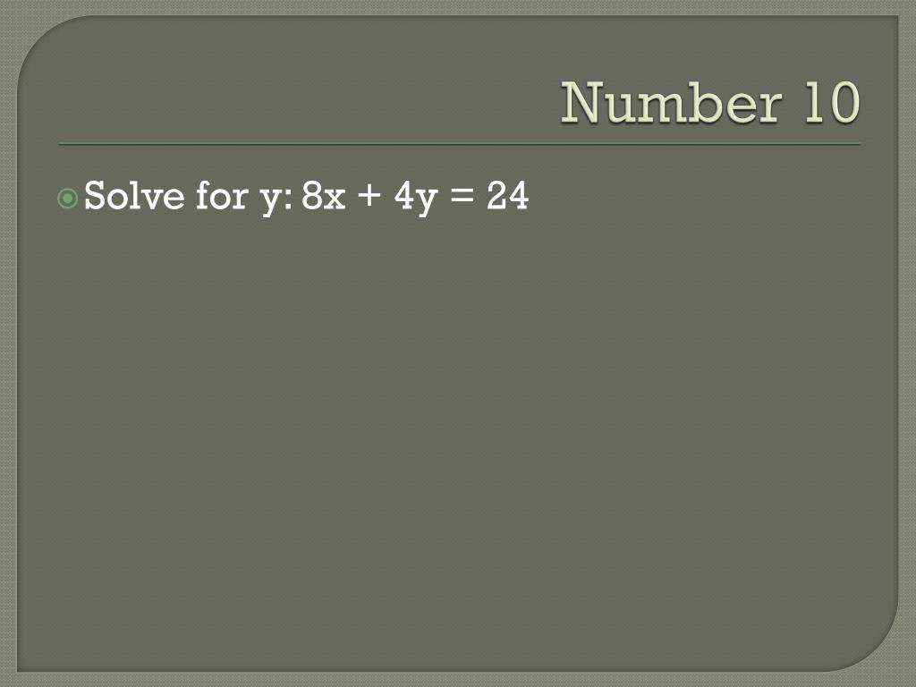 Number 12 • Solve y = -4x + 6 if the domain is {0,2,4} • You do not have to graph!
