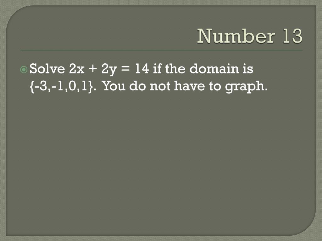 Number 13 Solve 2x + 2y = 14 if the domain is {-3,-1,0,1}. You do not have to graph.
