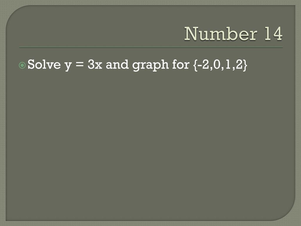 Number 14 Solve y = 3x and graph for {-2,0,1,2}
