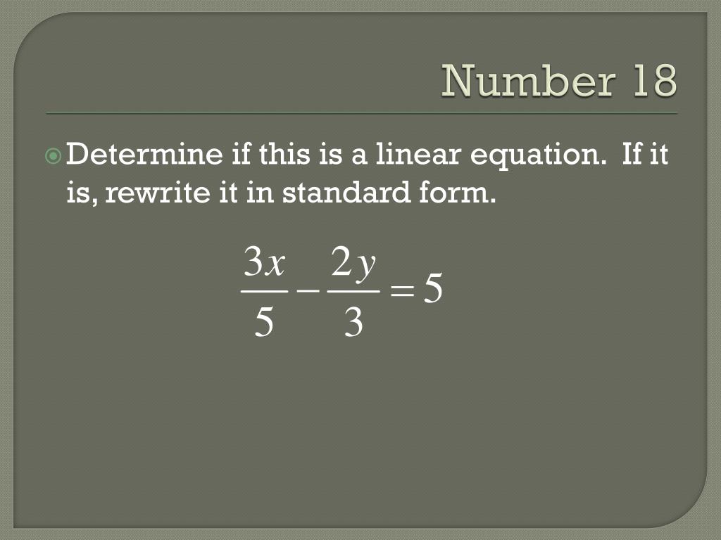 Number 18 • Determine if this is a linear equation. If it is, rewrite it in standard form.