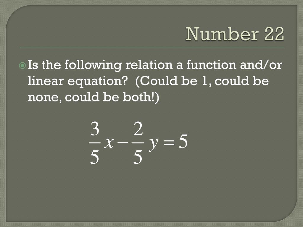 Number 22 Is the following relation a function and/or linear equation? (Could be 1, could be none, could be both!)