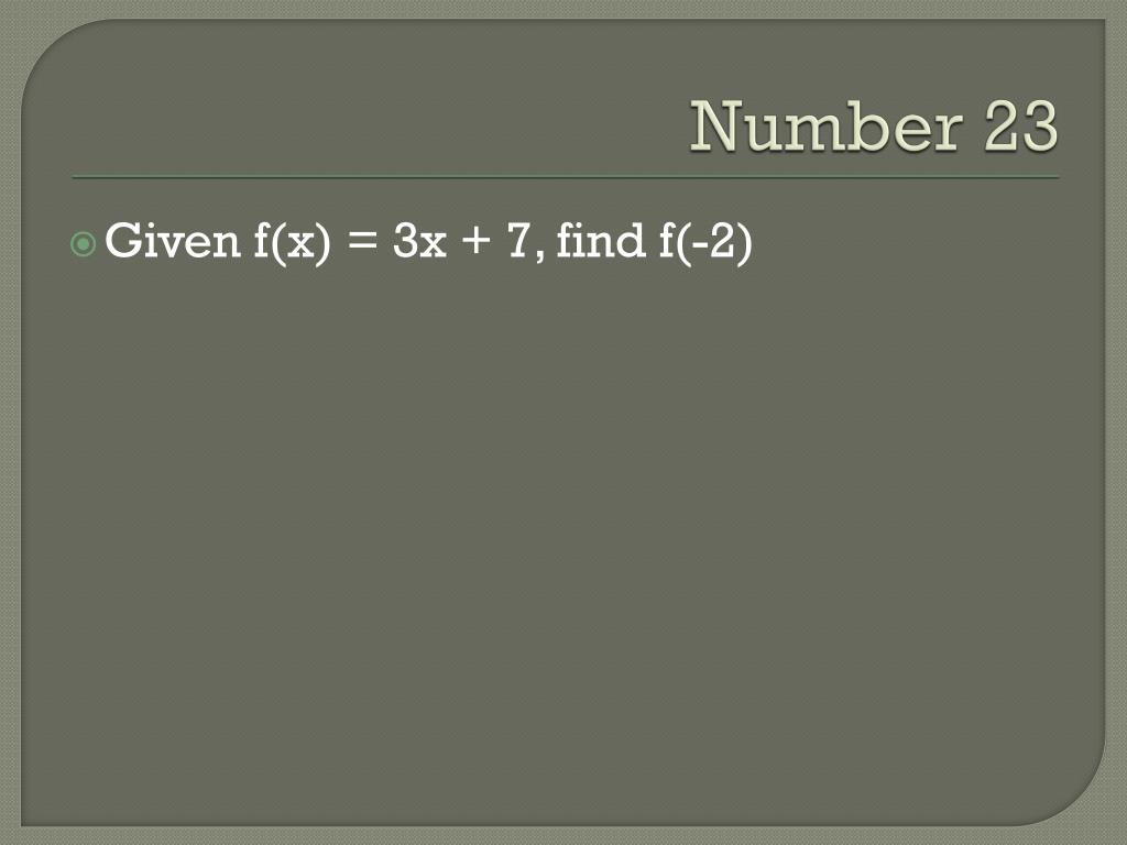 Number 23 Given f(x) = 3x + 7, find f(-2)