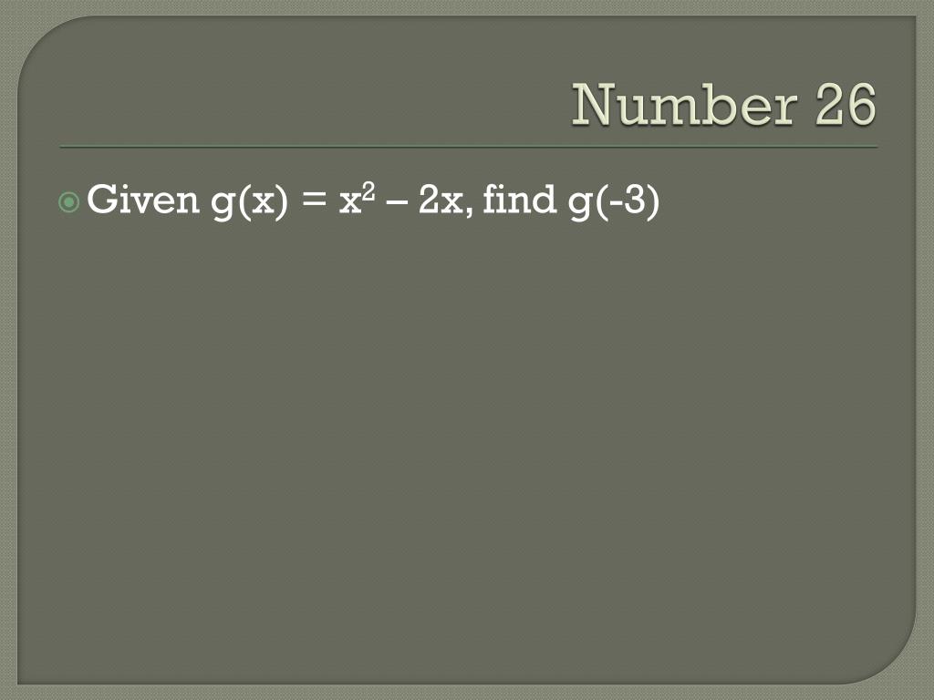 Number 26 Given g(x) = x2 – 2x, find g(-3)
