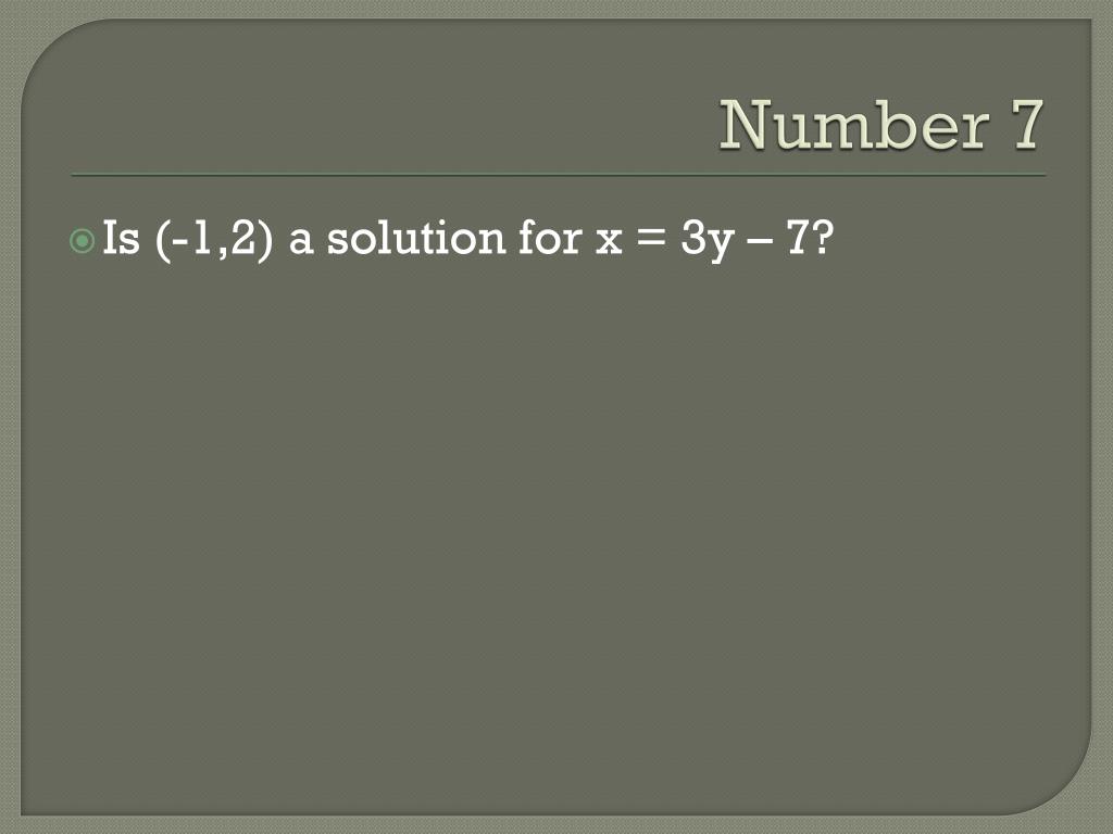 Number 7 Is (-1,2) a solution for x = 3y – 7?