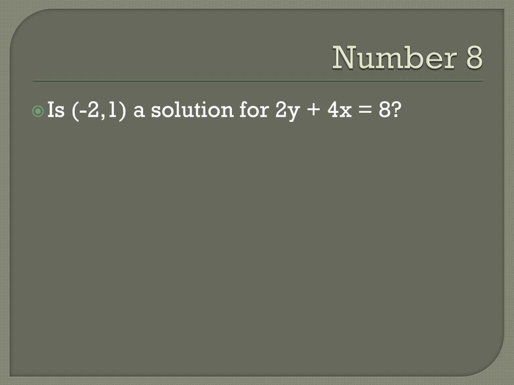 Number 8 Is (-2,1) a solution for 2y + 4x = 8?