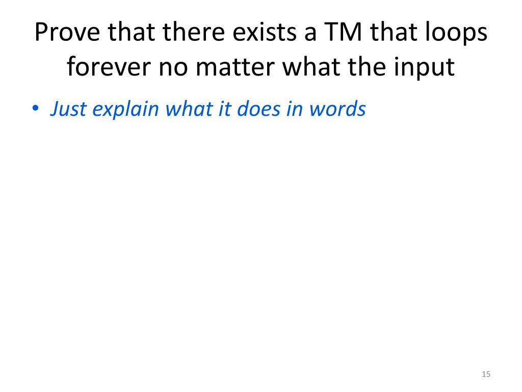 Prove that there exists a TM that loops forever no matter what the input • Just explain what it does in words