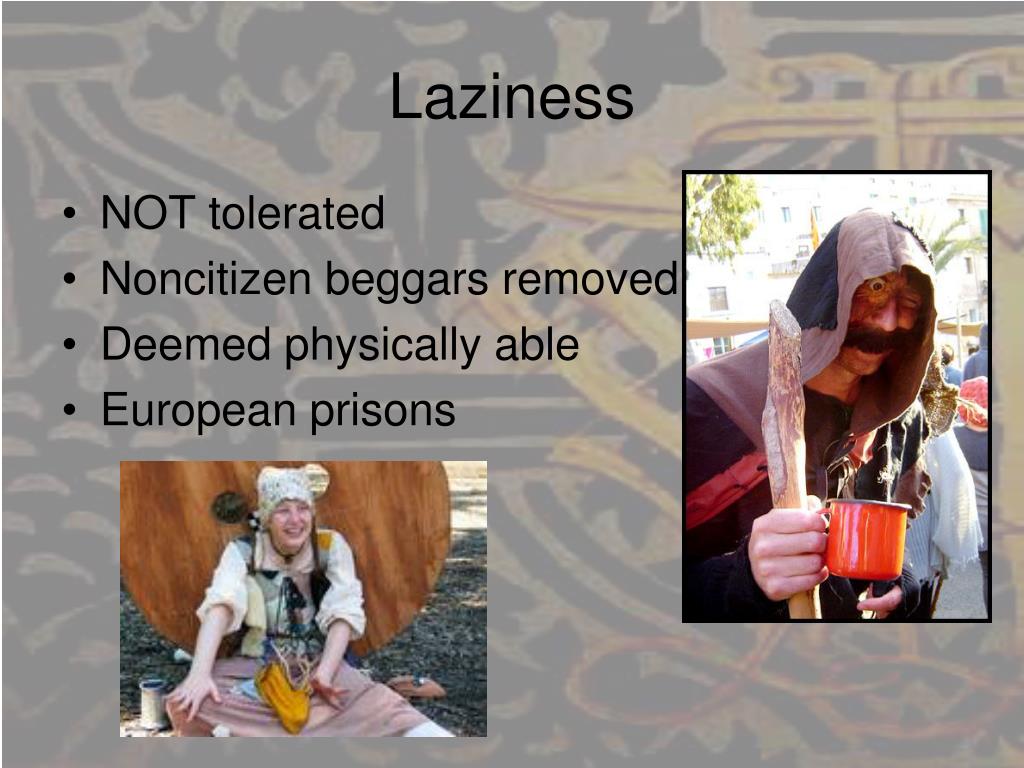 Laziness • NOT tolerated • Noncitizen beggars removed • Deemed physically able • European prisons