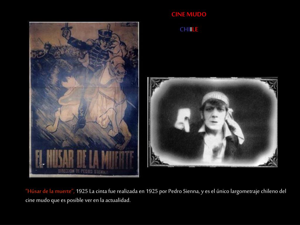 CINE MUDO CHIILE “Húsar de la muerte”, 1925 La cinta fue realizada en 1925 por Pedro Sienna, y es el único largometraje chileno del cine mudo que es posible ver en la actualidad. Antonio Machuca Ahumada, Abril 2009
