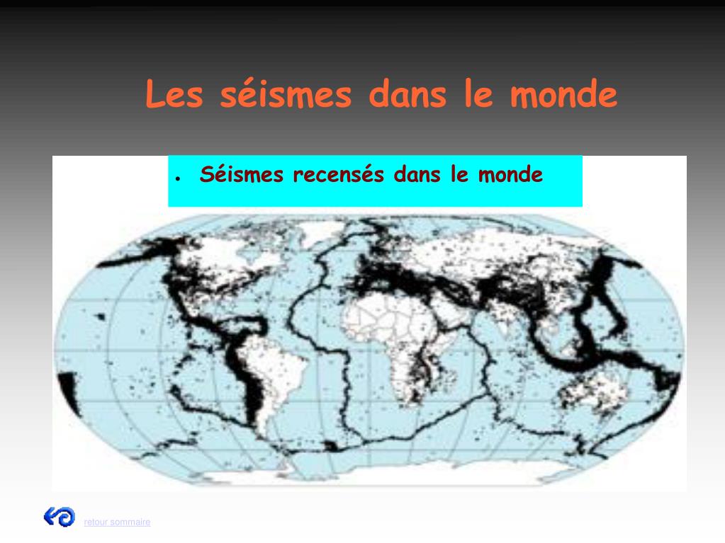 Les séismes dans le monde • Séismes recensés dans le monde retour sommaire