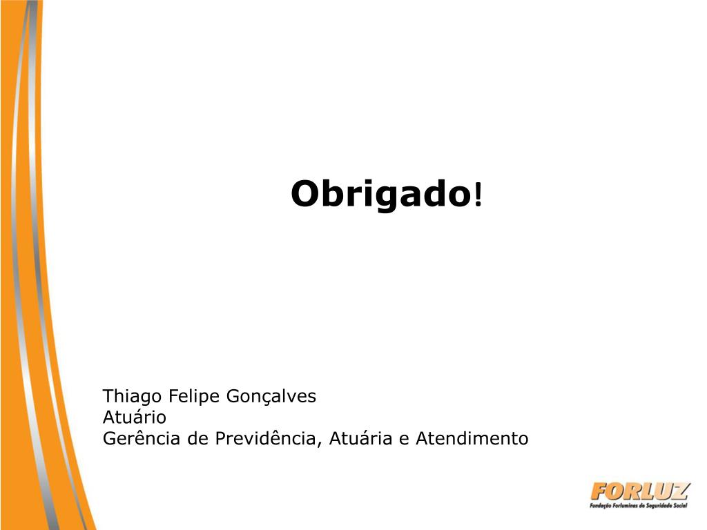 Obrigado! Thiago Felipe Gonçalves Atuário Gerência de Previdência, Atuária e Atendimento
