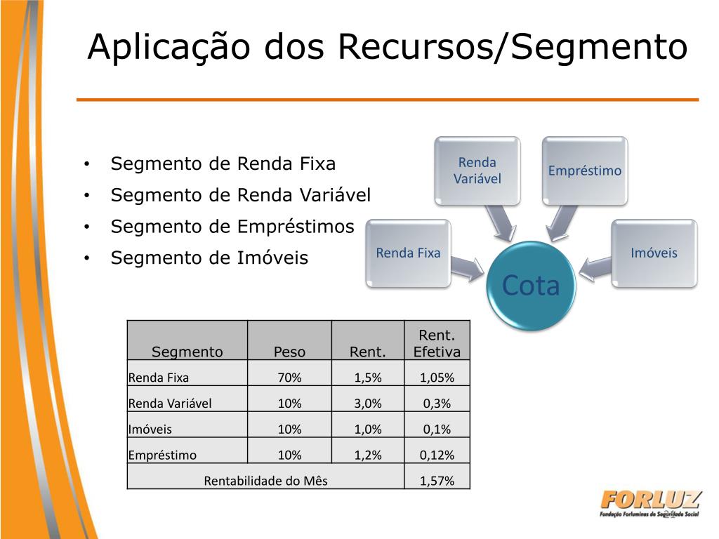 Aplicação dos Recursos/Segmento • Segmento de Renda Fixa • Segmento de Renda Variável • Segmento de Empréstimos • Segmento de Imóveis