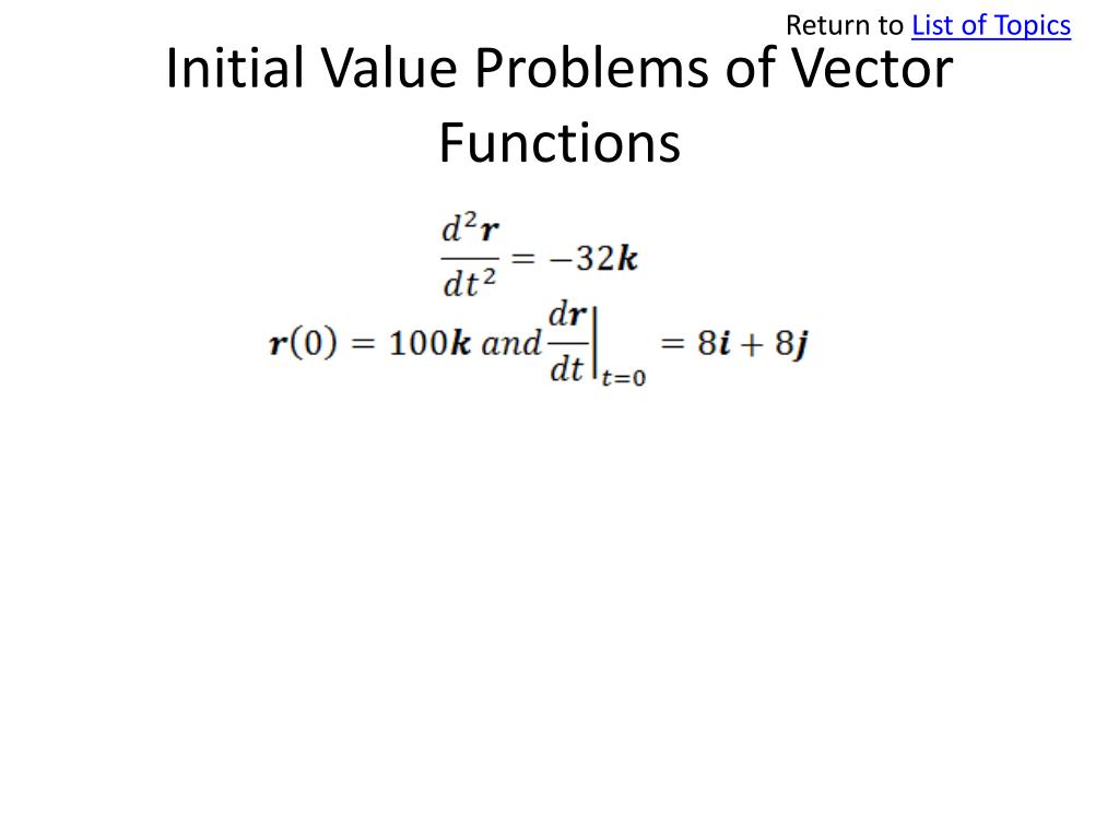 Return to List of Topics • May give you 4 points and ask you if all lie on the same plane • Distance from a line to a plane (be careful to check that the line does not intersect the plane) • Ask you to re-write a curve with the arc length parameter (this means you should provide r(s))