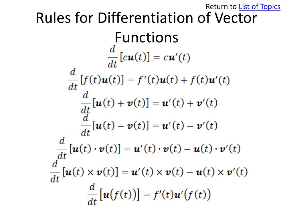 Return to List of Topics Rules for Differentiation of Vector Functions