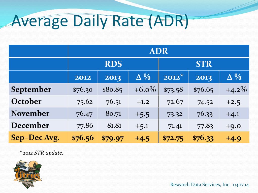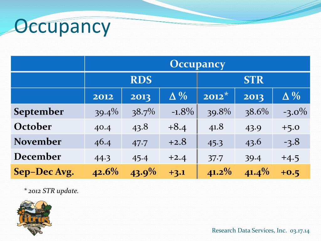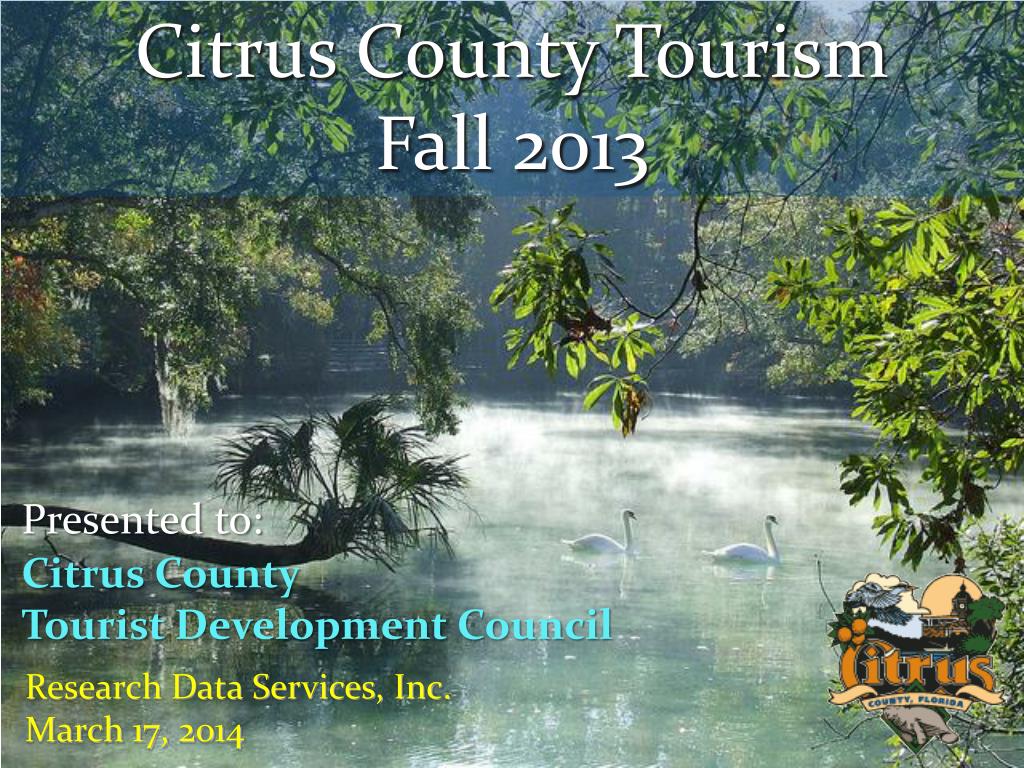 Citrus County Tourism Fall 2013 Presented to: Citrus County Tourist Development Council Research Data Services, Inc. March 17, 2014