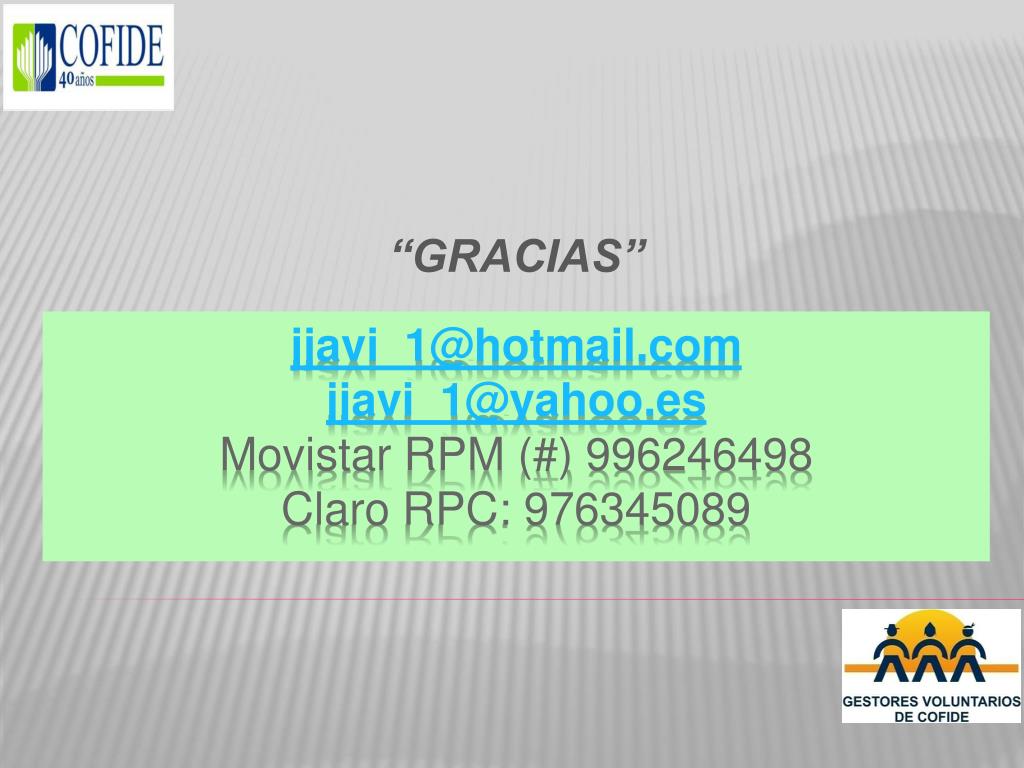 “GRACIAS” jjavi_1@hotmail.comjjavi_1@yahoo.esMovistar RPM (#) 996246498Claro RPC: 976345089