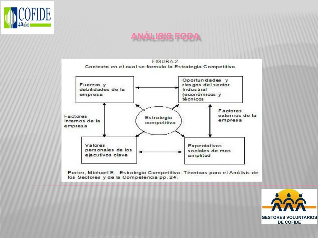 Para M. Porter (1982) La estrategia competitiva examina la forma en la que una empresa puede competir con más eficacia para fortalecer su posición en el mercado. Cualquier estrategia debe ocurrir en el contexto de las reglas del juego para el comportamiento competitivo socialmente deseable, establecidas por las normas de ética y por medio de la política y regulaciones del gobierno. Las reglas del juego no pueden lograr el efecto deseado a menos que anticipen correctamente la forma en que las empresas responden estratégicamente a las amenazas y oportunidades competitivas. Las estrategias competitivas constituyen una combinación de medios (políticas) aplicados a las distintas operaciones de la empresa para lograr los fines propuestos (objetivos).(véase figura No. 2). Estrategias competitivas