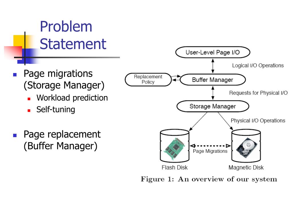 ProblemStatement • Page migrations (Storage Manager) • Workload prediction • Self-tuning • Page replacement (Buffer Manager)