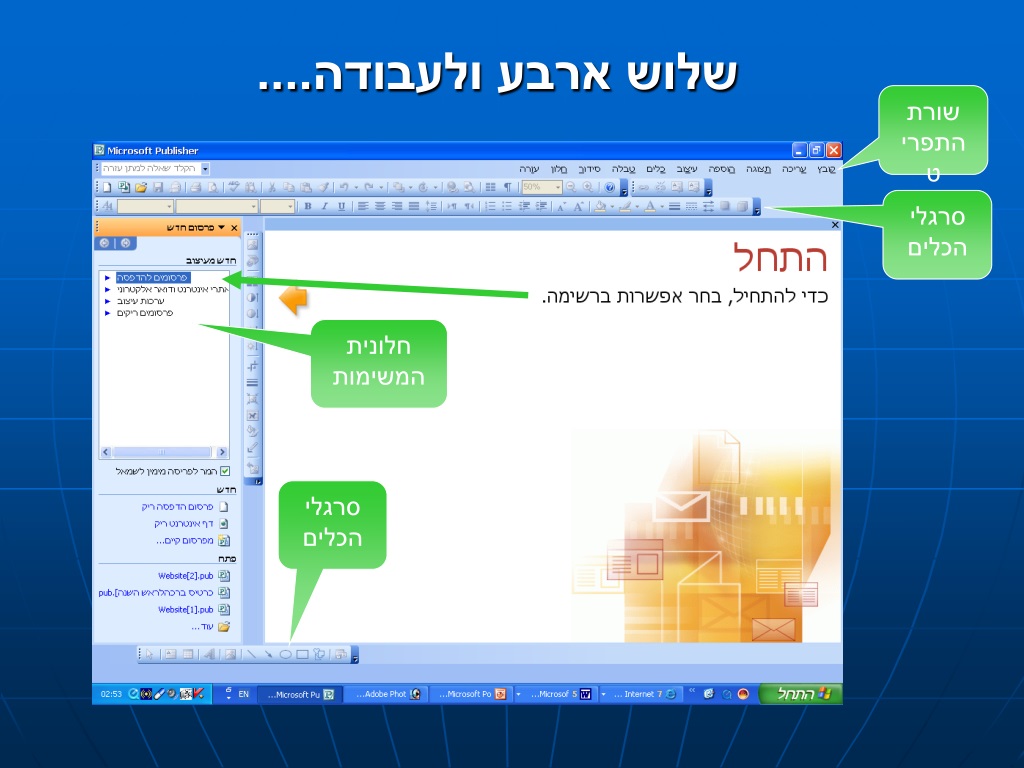 תוכנת פבלישרMicrosoft Office Publisher 2003 השתלמות ותיקים פברואר 2007