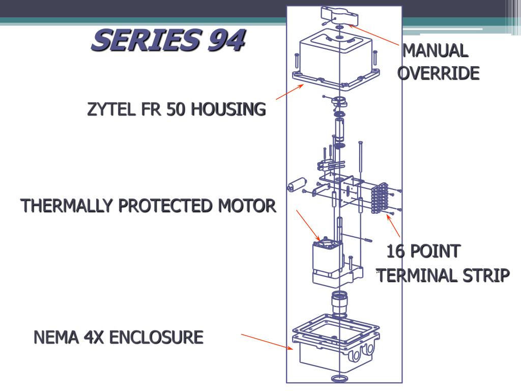 SERIES 94 MANUAL OVERRIDE ZYTEL FR 50 HOUSING THERMALLY PROTECTED MOTOR 16 POINT TERMINAL STRIP NEMA 4X ENCLOSURE