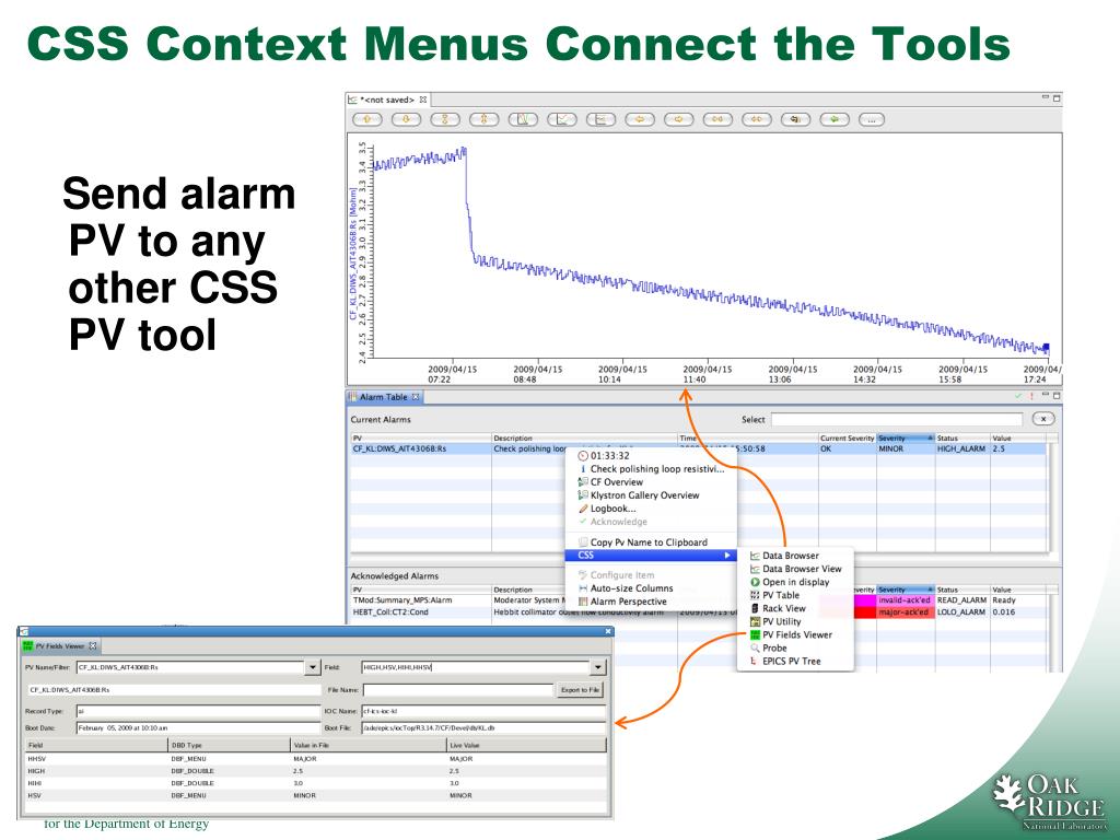 CSS Context Menus Connect the Tools Send alarmPV to anyother CSSPV tool