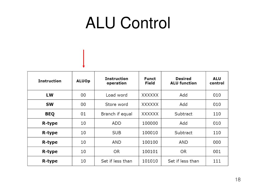 Output from ALU control unit [input to ALU itself] Input to ALU control unit ALU Control Unit Truth Table