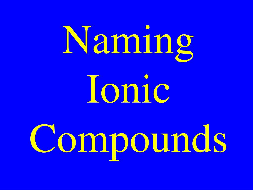 Name positive element first with its normal name • Name negative element last & change its ending to -ide