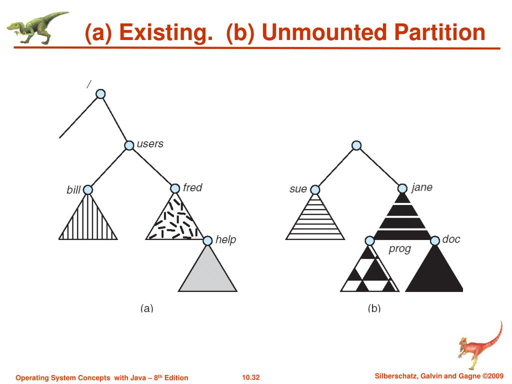 File System Mounting • A file system must be mounted before it can be accessed • A unmounted file system (i.e. Fig. 11-11(b)) is mounted at a mount point
