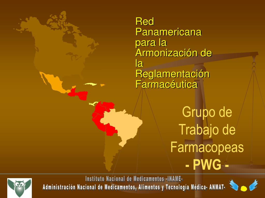 Red Panamericana para la Armonización de la Reglamentación Farmacéutica Grupo de Trabajo de Farmacopeas - PWG - Instituto Nacional de Medicamentos -INAME- Administración Nacional de Medicamentos, Alimentos y Tecnología Médica- ANMAT-