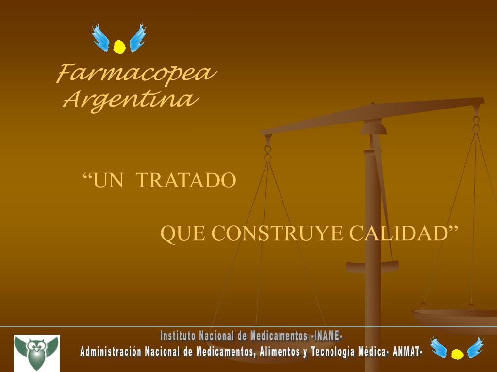 Farmacopea Argentina “UN TRATADO QUE CONSTRUYE CALIDAD” Instituto Nacional de Medicamentos -INAME- Administración Nacional de Medicamentos, Alimentos y Tecnología Médica- ANMAT-