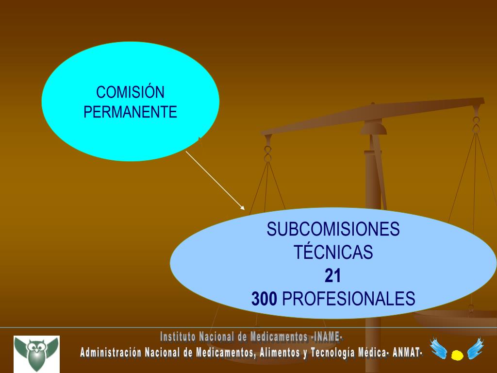 COMISIÓN PERMANENTE SUBCOMISIONES TÉCNICAS 21 300 PROFESIONALES Instituto Nacional de Medicamentos -INAME- Administración Nacional de Medicamentos, Alimentos y Tecnología Médica- ANMAT-