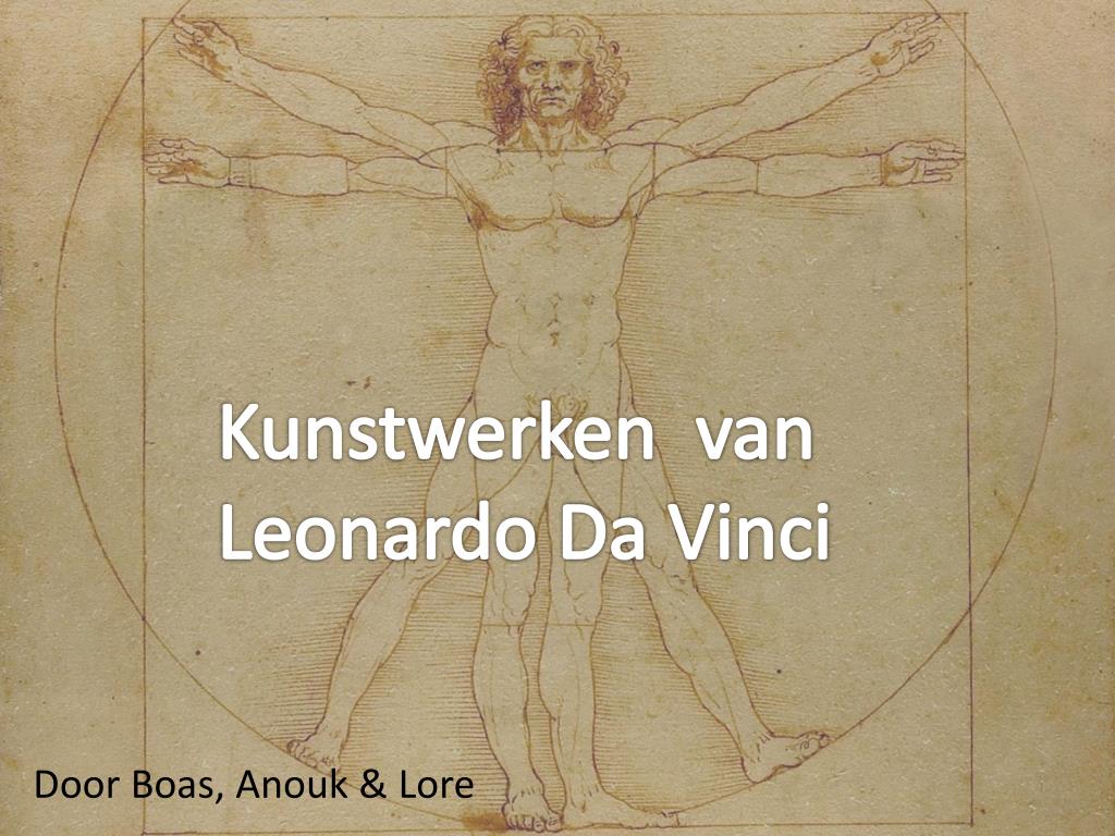 Kunstwerken van Leonardo Da Vinci. Door Boas , Anouk & Lore. Hoeveel?. Ongeveer 30. Weetje: Wist je dat Leonardo Da Vinci linkshandig was? Hij schreef alles altijd in spiegelschrift!. Reden schilderijen De mens van Vitruvius grote interesse in de bouw van het lichaam