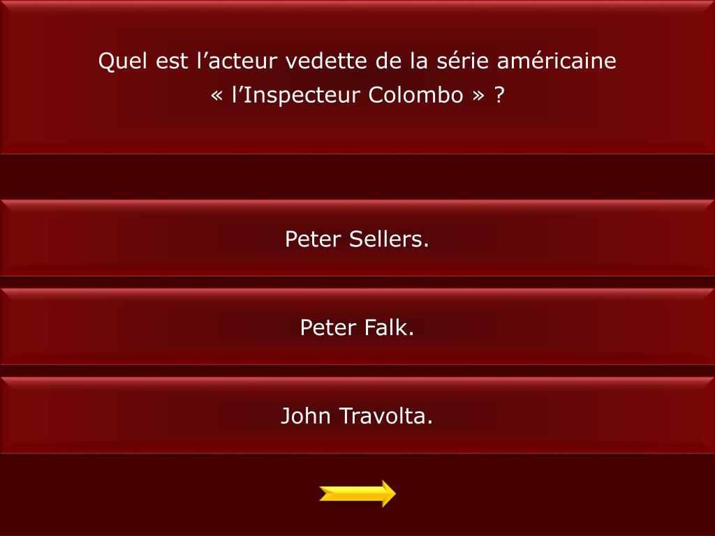 Quel est l’acteur vedette de la série américaine « l’Inspecteur Colombo » ? Peter Sellers. Peter Falk. John Travolta.