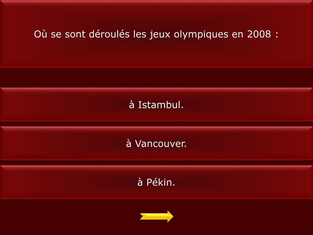 Où se sont déroulés les jeux olympiques en 2008 : à Istambul. à Vancouver. à Pékin.