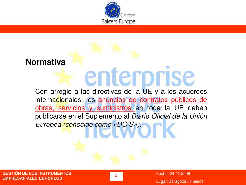 Normativa Con arreglo a las directivas de la UE y a los acuerdos internacionales, los anuncios de contratos públicos de obras, servicios y suministros en toda la UE deben publicarse en el Suplemento al Diario Oficial de la Unión Europea (conocido como «DO S»).