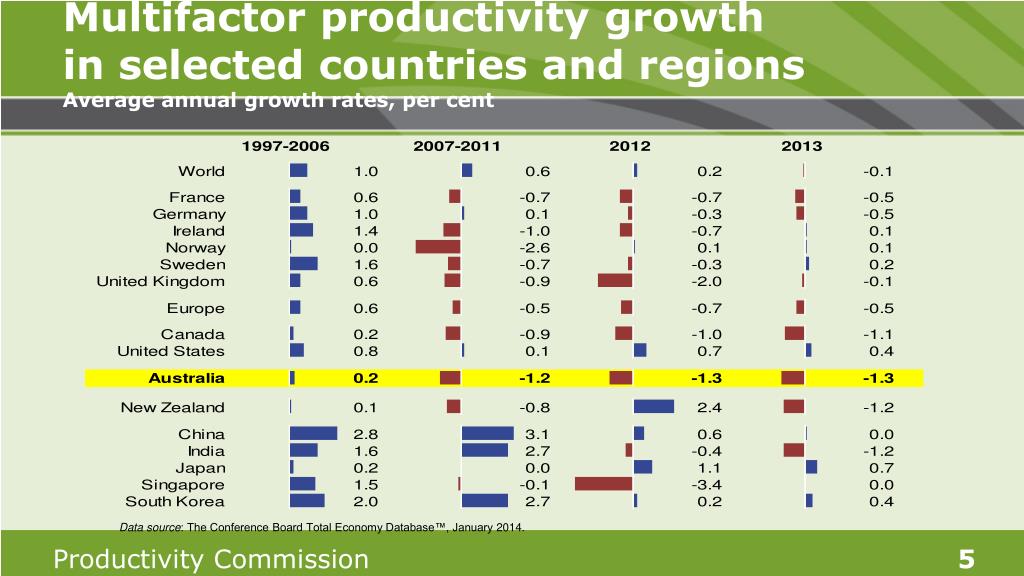 Multifactor productivity growthin selected countries and regionsAverage annual growth rates, per cent Data source: The Conference Board Total Economy Database™, January 2014.