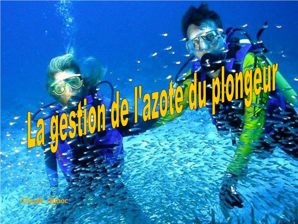 Alvéole : Pp N2 = 4 b Déséquilibre : L'azote passe dans le sang Sang hématosé : TN2 < 4 b Sang non hématosé : TN2 < 4 b Les tissus fixent de l'azote Tous les tissus du corps : TN2 < 4 b Les trois états de l'azote dans le corps En immersion : Pp N2 > 0,8 b A 40 m : Pp N2 = 4 b 2- Les tissus du corps sont sous saturés