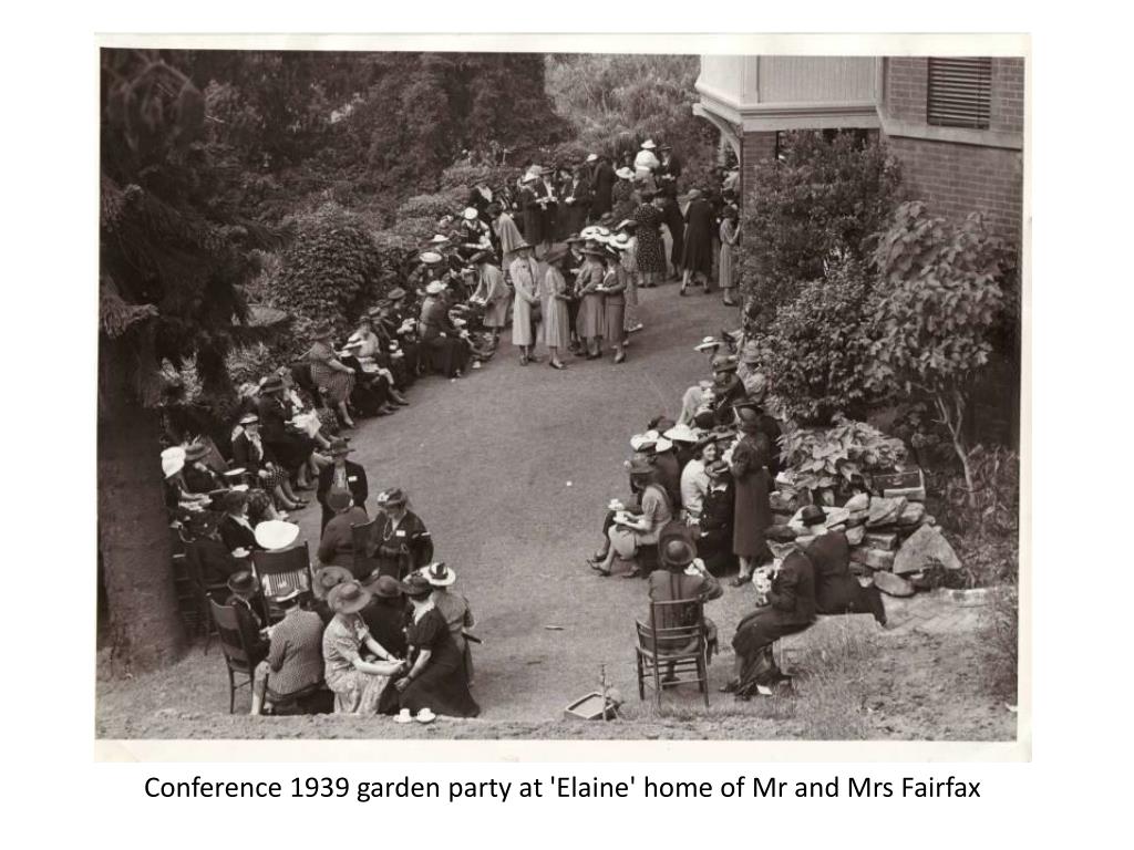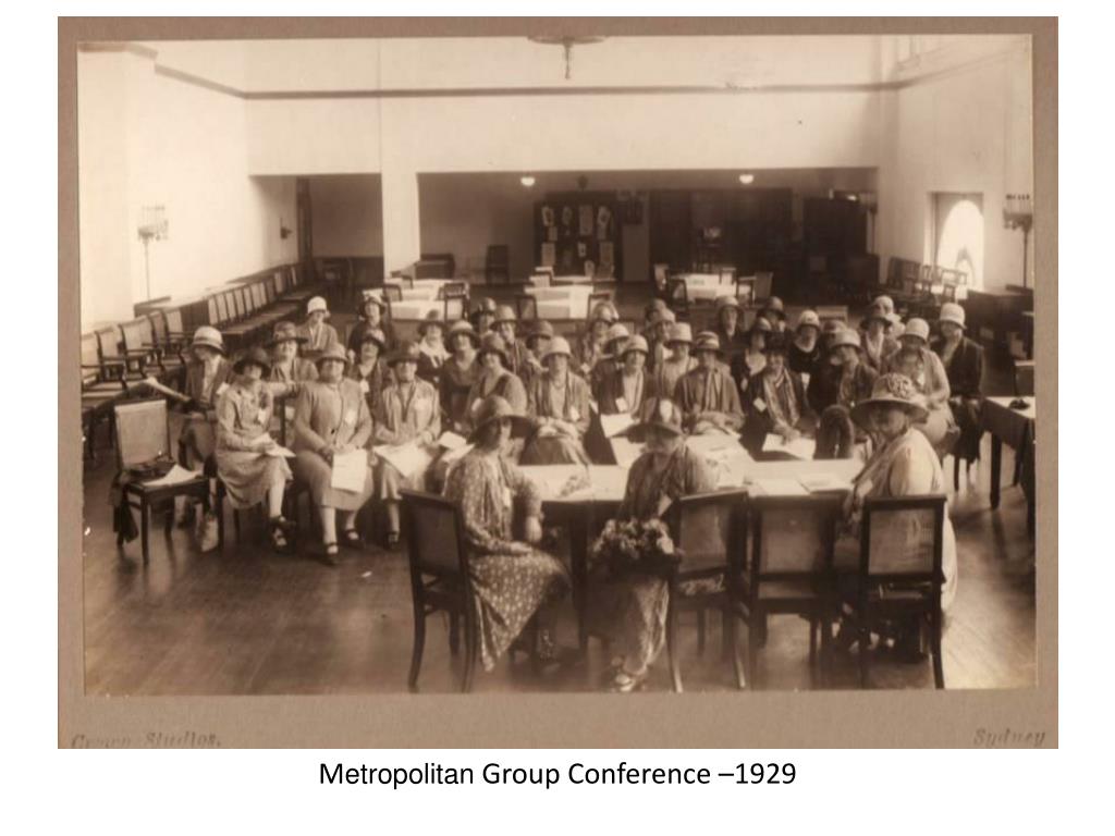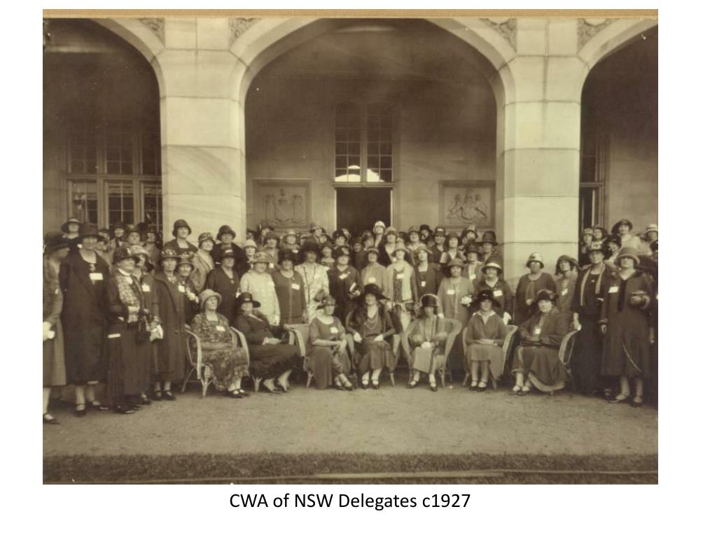 Mrs Munro MBE – 1922–1924. Bilgola Beach – 1923. CWA d ecorated car in Tamworth parade – 1924. Mrs Studdy – 1925–1928. Conference – 1925. State Executive Committee – 1926. CWA of NSW Delegates c1927. Mrs M Sawyer OBE – 1928–1938. M etropolitan Group Conference –1929.