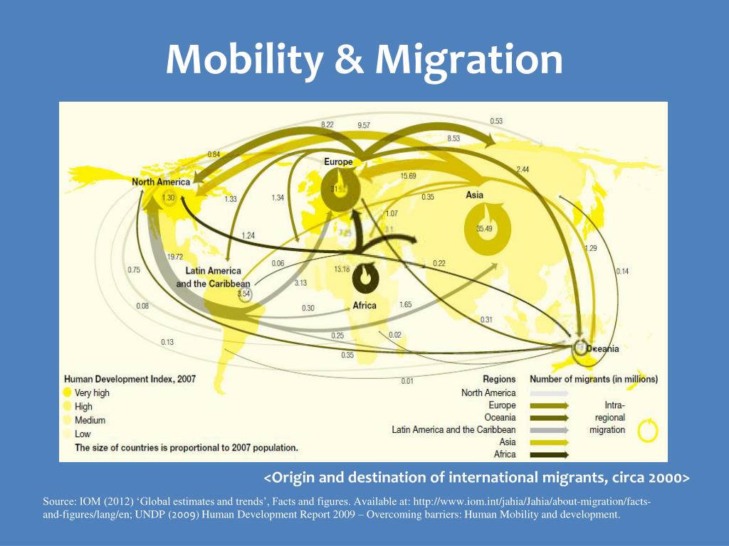 Mobility & Migration <Origin and destination of international migrants, circa 2000> Source: IOM (2012) ‘Global estimates and trends’, Facts and figures. Available at: http://www.iom.int/jahia/Jahia/about-migration/facts-and-figures/lang/en; UNDP (2009) Human Development Report 2009 – Overcoming barriers: Human Mobility and development.