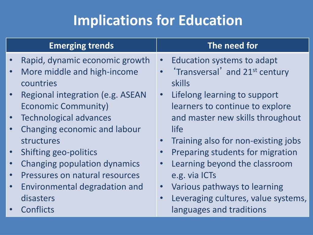 Shifts in approaches to teaching and learning in Asia-Pacific • From teacher-centred approaches to learner-centredapproaches. • From examination oriented teaching and learning to whole person development. • From textbook dominated classrooms to multi-media/source/method learning environment. • From subject-based knowledge only to the inclusion of skills for life and lifelong learning. • From national relevance only to local and global relevance also. From uniformity to diversity. Regional High-Level Expert Meeting Beyond 2015: Transforming Teaching and Learning in the Asia-Pacific Region Outcome Statement, http://www.unescobkk.org/fileadmin/user_upload/epr/ERF/Conference_docs/Expert_Meeting_Oct_2013/Outcome_statement_of_Part_A_of_the_Meeting.pdf