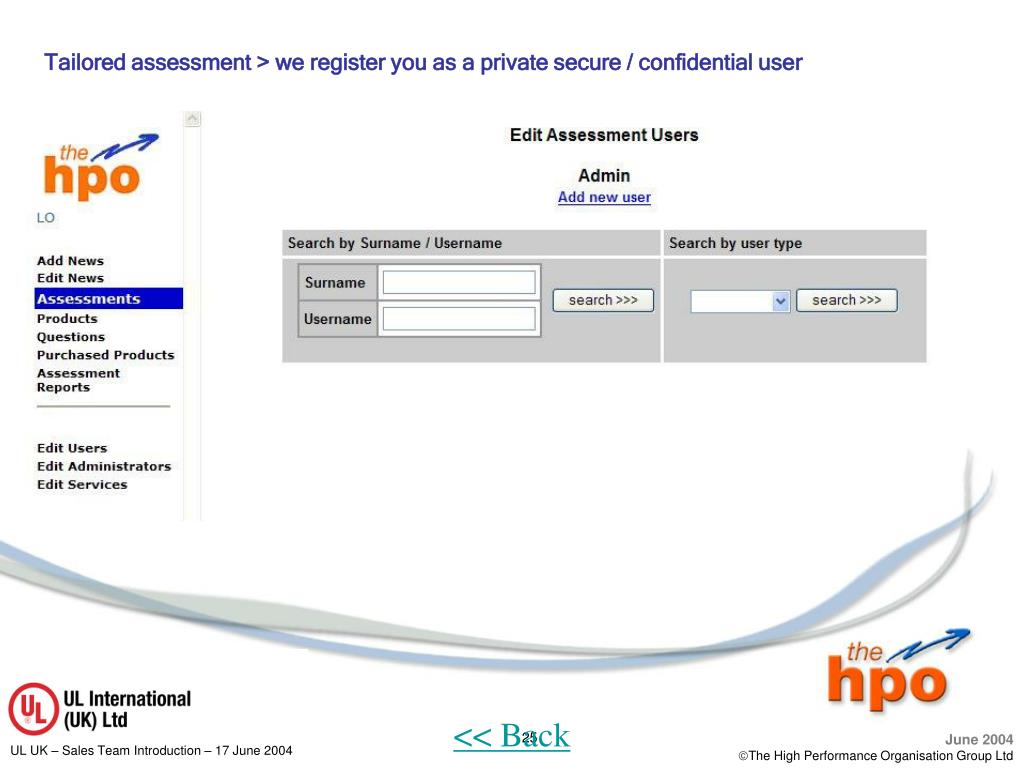 Tailored assessment > we register you as a private secure / confidential user << Back