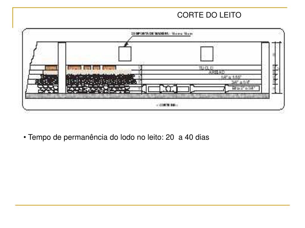 CORTE DO LEITO • Tempo de permanência do lodo no leito: 20 a 40 dias