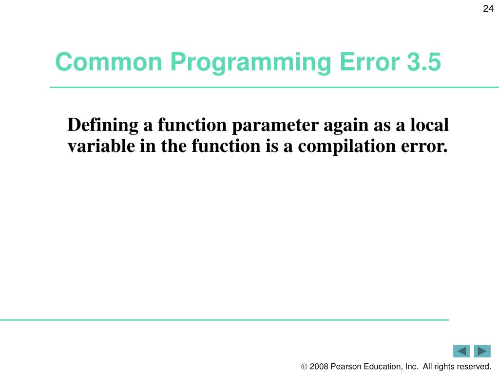 Common Programming Error 3.5 • Defining a function parameter again as a local variable in the function is a compilation error.