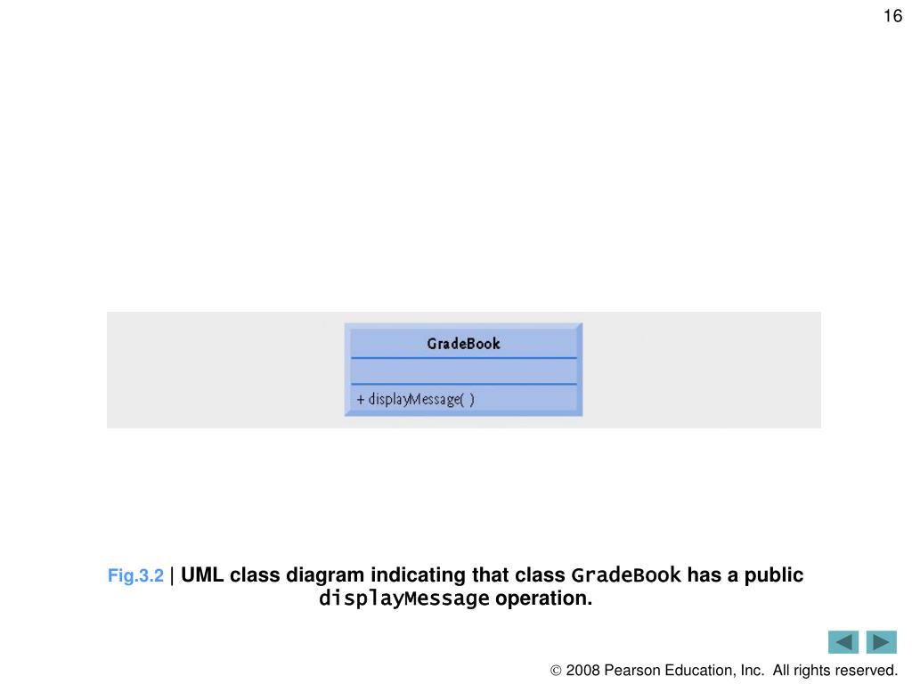 Fig.3.2| UML class diagram indicating that class GradeBook has a public displayMessage operation.