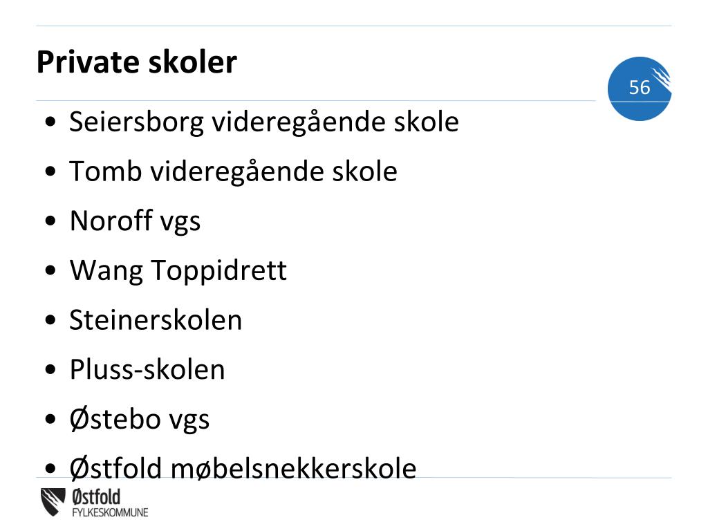 Private skoler • Seiersborg videregående skole • Tomb videregående skole • Noroffvgs • Wang Toppidrett • Steinerskolen • Pluss-skolen • Østebovgs • Østfold møbelsnekkerskole