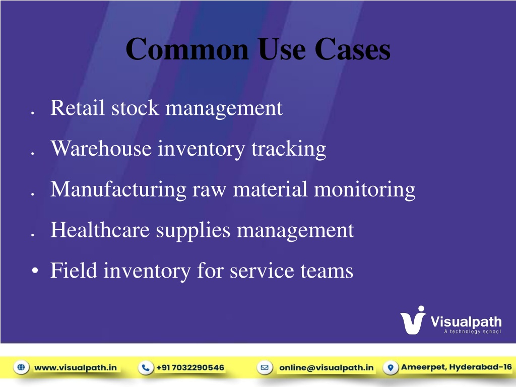 Common Use Cases • Retail stock management • Warehouse inventory tracking • Manufacturing raw material monitoring • Healthcare supplies management • Field inventory for service teams