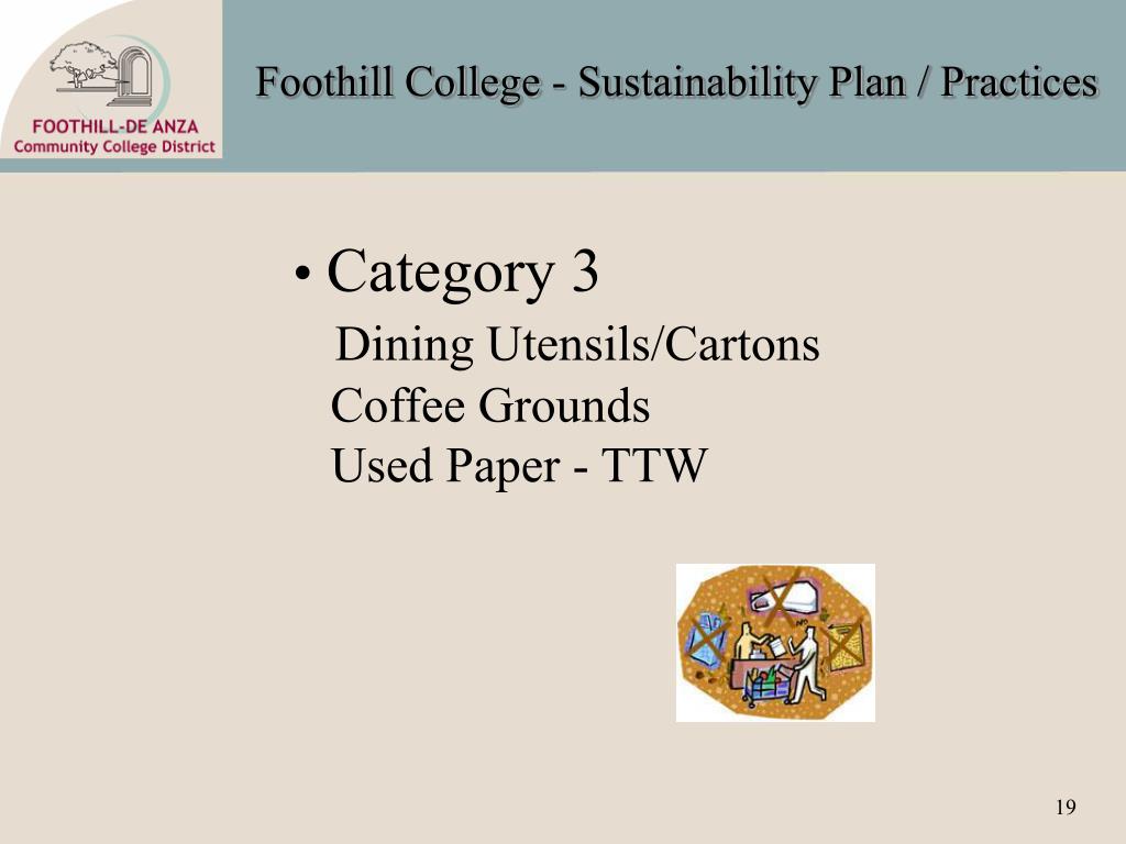 Foothill College - Sustainability Plan / Practices • Category 3 • Dining Utensils/Cartons • Coffee Grounds • Used Paper - TTW
