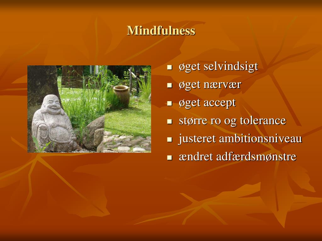 øget selvindsigt øget nærvær øget accept større ro og tolerance justeret ambitionsniveau ændret adfærdsmønstre Mindfulness