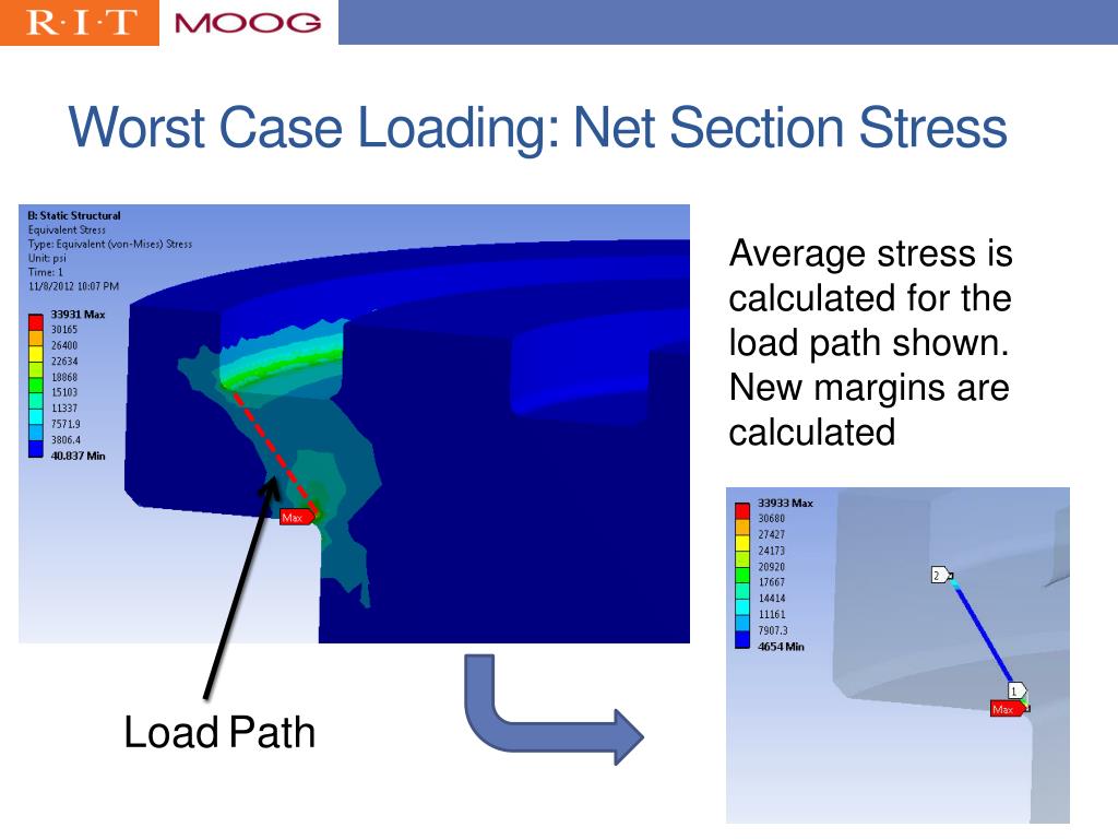 Worst Case Loading: Net Section Stress Average stress is calculated for the load path shown. New margins are calculated LoadPath