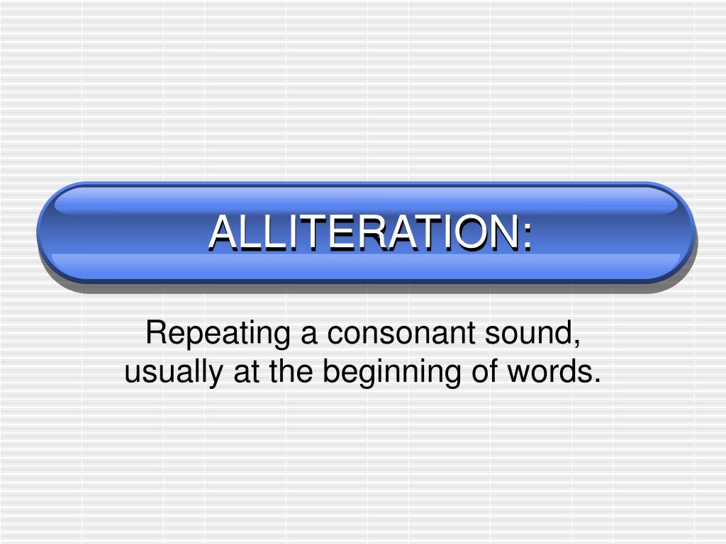 ALLITERATION: Repeating a consonant sound, usually at the beginning of words.